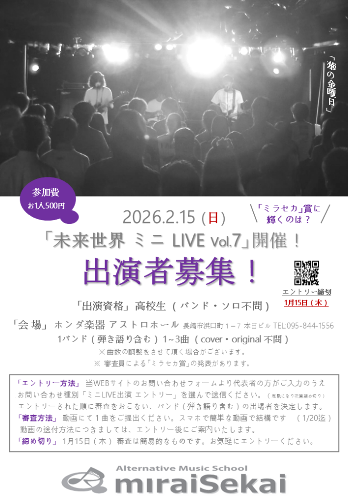 2026.2.15 (日)に開催される「未来世界 ミニLIVE Vol.7」の出演者を募集します。